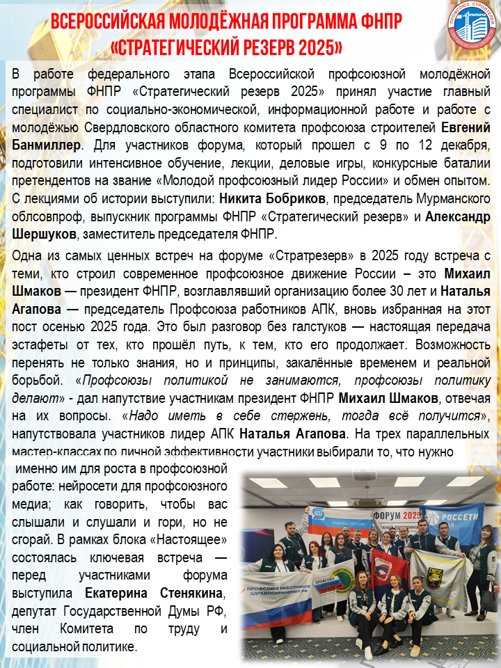 Свердловская областная организация профсоюза работников строительства и промышленности строительных материалов РФСвердловская областная организация профсоюза работников строительства и промышленности строительных материалов РФ