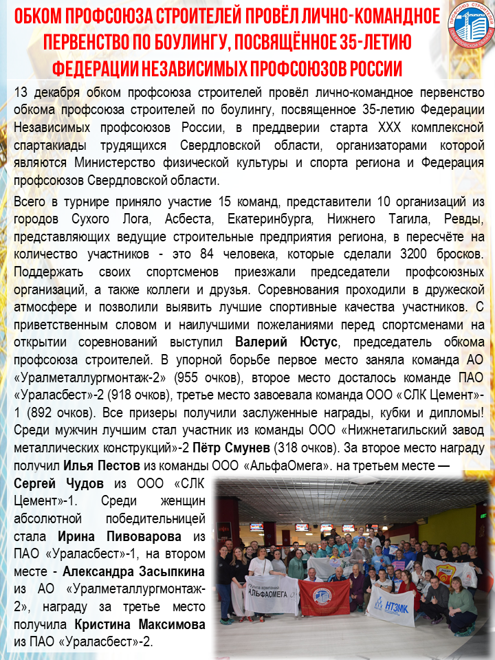 Свердловская областная организация профсоюза работников строительства и промышленности строительных материалов РФСвердловская областная организация профсоюза работников строительства и промышленности строительных материалов РФ