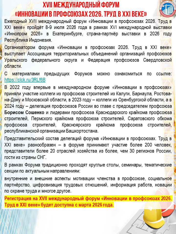 ПОЛОЖЕНИЕ о лучшем уполномоченном по охране труда Свердловской областной организации профсоюза строителей России за 2025 год