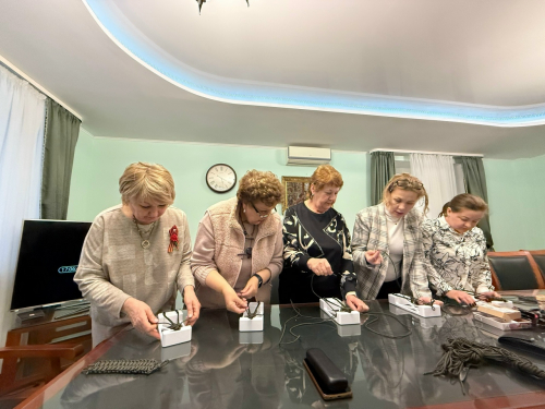 - Изготовление броши к 9 Мая и плетение браслетов для военных, участвующих в СВО — участницы объединились в добром деле. Каждая созданная своими руками брошь и браслет стали не просто поделкой, а частичкой заботы, благодарности и поддержки для тех, кто в этом особенно нуждается. Был проведён мастер‑класс по изготовлению броши с георгиевской лентой. Участницы освоили основные приёмы работы и создали памятные изделия, которые можно будет надеть в День Победы или подарить близким в знак уважения к подвигу героев Великой Отечественной войны.